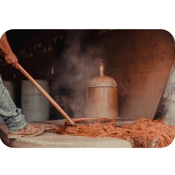 Destilado en alambiques de cobre calentados con leña para crear un Mezcal joven y lograr la combinacición perfecta del dulce agave verde y el sutil ahumado.